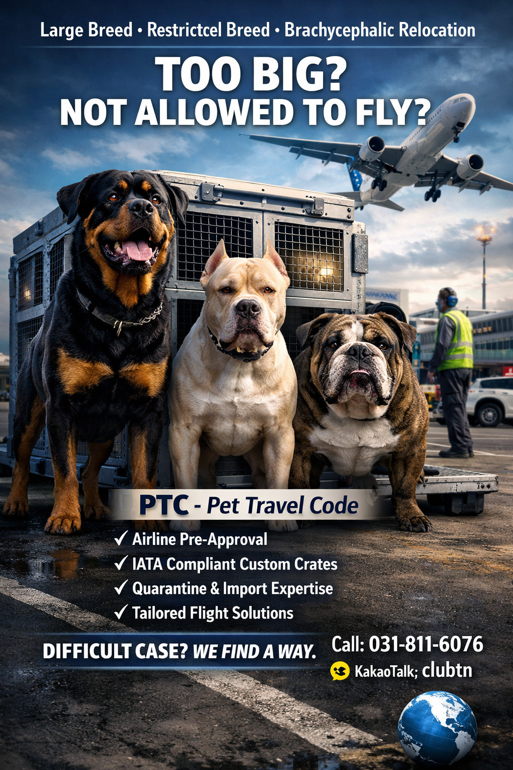 "우리 개는 비행기 못 타나요?" 대형견·단두종 항공 거절 해결 사례 (강아지 고양이 반려동물 대형견 해외 운송 국제운송 전문 서비스 PTC)